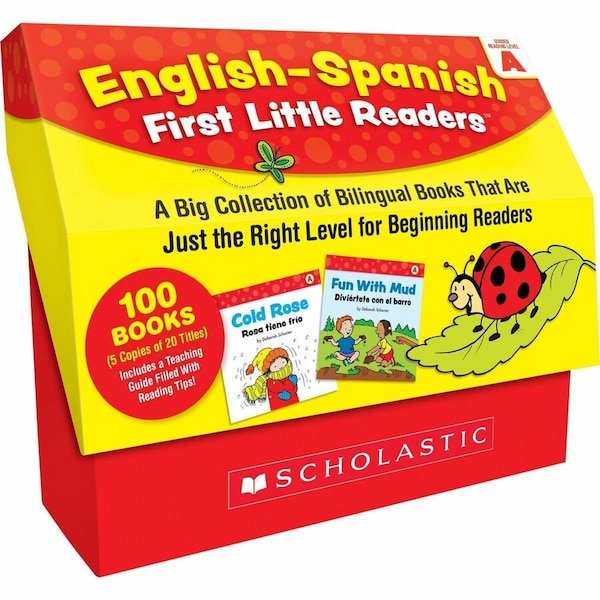 Give English Language Learners ELL the support they need in reading with these tempting little books featuring text in English and Spanish. Written to correlate with Guided Reading Level A, these simple, predictable stories feature high-frequency words, rhyming repetition and helpful illustrations on topics students love. They are perfect as a bilingual resource for early learners or introducing English speakers to a new language. Book set includes five copies of 20 titles for a total of 100 books that are perfect for a classroom. Each book contains eight pages, 32-page teaching guide and storage unit.