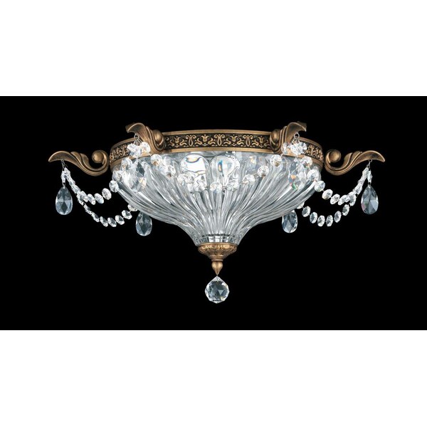 The baroque castings of Milano, made in Italy, feature delicate ornamentations that celebrate the heritage of the great Italian chandeliers of the seventeenth Century. Heavy crystals enhance the lace-like precious metal body.