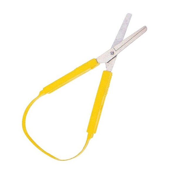 A pair of scissors made easy for all abilities. Simple-to-use, long polypropylene handles can be squeezed together by hands, arms, or any other mobile limb. Blades spring back automatically. Handles are yellow. Not for children 3 years or under.