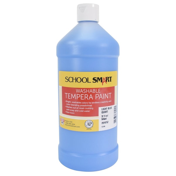 The School Smart Washable Tempera paint is economical and great for the beginning artist. Brilliant and rich opaque colors offer endless creativity and color blending possibilities. Cleans up easily with soap and water and won't chip, flake, or crack when dry.