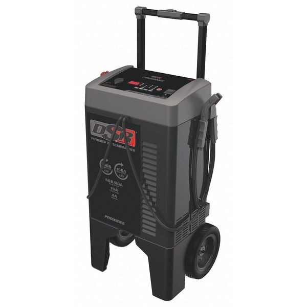 Battery Charger, Charger Style Wheeled, For Use With Battery Type AGM, Deep Cycle, Gel, Automatic/Manual Automatic, For Battery Voltage 12 V DC, 24 V DC, Boost Current @ Voltage 150 A @ 24V, 250 A @ 12V, Charging Current @ Voltage 50 A @ 12V, Maintaining Current @ Voltage 4 A @ 12V, Cable Length 17 ft, Cable Wire Gauge 4 AWG, Charge Type Float, Charger Function Boosting, Charging, Maintaining, Cold Cranking Current @ Voltage 100 A @ 12V, Connector Type Alligator Clip, Housing Material Plastic