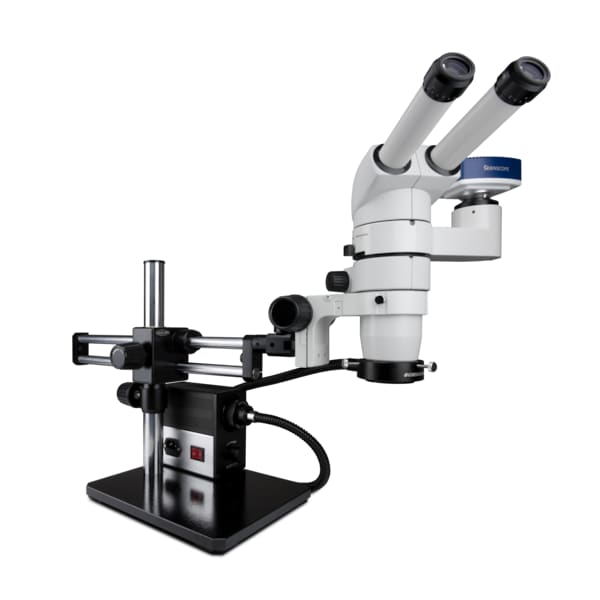 20 Degree Head Stereo Zoom Microscope, LED Ring, Camera On Dual Arm Stand