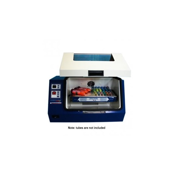 Allows to heat, rotate, rock, and shake all in one compact unit. The incubator is best for applications such as Gel and Blot staining, Cell or Bacterial Culture, as well as any application that requires mixing, washing, rocking, and temperature control of a sample. Our unique air circulation system gently and temperature consistency throughout the entire chamber and mixing process.The unit is compatible with an extensive accessory line-up.Supplied with: 1 Clip Plate each for 10-13 mm, 15-17mm and 28-30mm Tubes4 Bag Mounting StripsNon-Skid Tray and ShelfStack-able Wire Rack
