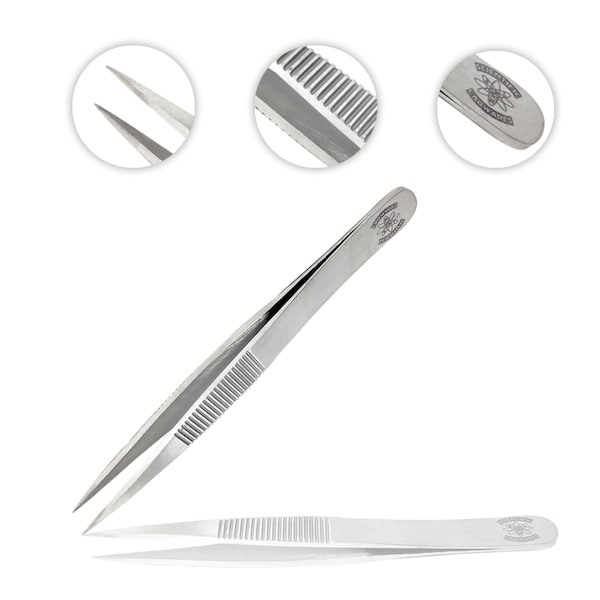 High Precision Straight Medium Point with Serrated Grip Tweezers/Forceps