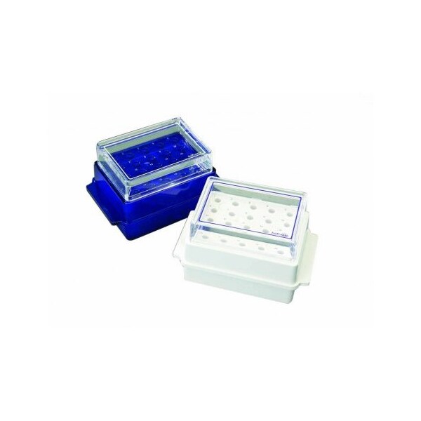 Iso-Chill Flipper racks, blue -20oC, unit will maintain a temperature between -10o and -20oC for up to three hours, for keeping enzymes, cells and other temperature sensitive reagents cool and stable when on a benchtop. Also protect samples in event of a freezer or power failure. Iso-Chill Flipper racks can accommodate up to twenty 1.5 ml - 2.0 ml micro-tubes or screw cap tubes on one side or twenty 0.5 ml tubes on the reverse side. Both rack and lid are constructed of virtually unbreakable polycarbonate.