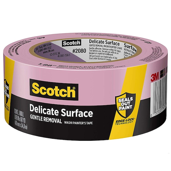 Scotch Delicate Surface Painter’s Tape is great for surfaces that require a little extra care such as wood floors, wallpaper, cabinets, and freshly painted walls. The delicate surface tape with gentle adhesive can stay on surfaces for up to 60 days and then removes easily without leaving any sticky residue behind. This tape features Edge-Lock Technology that seals out paint to deliver sharp paint lines and clean removal for your more sensitive projects.