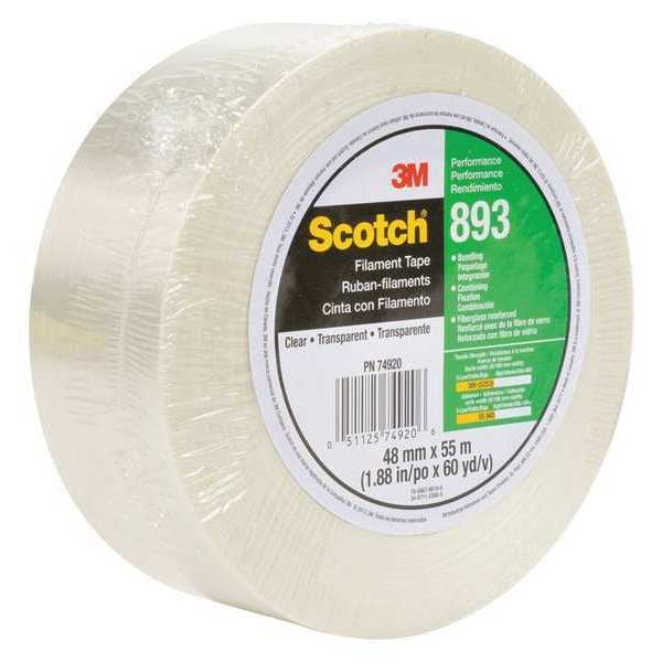 3M 893 Strapping Tape, 6.0 Mil, 2" x 60 yds., Clear, PK24