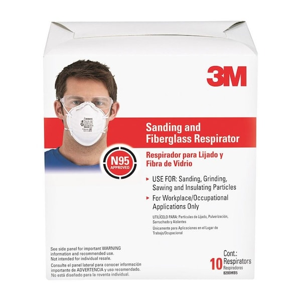 Whether you're insulating a living room or sanding a bookcase, reach for the 3M 8200 Sanding and Fiberglass Respirator. This N95 respirator features Advanced Electrostatic Media that enhances the capture of airborne particles while allowing you to breathe easier. Designed to help provide a secure sealit is economy without compromise. Projects start with safety so make sure to pick up the 3M 8200 Sanding and Fiberglass Respirator.