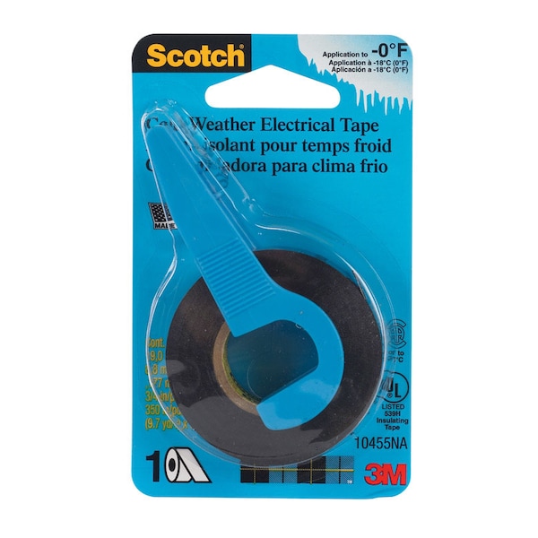 Scotch cold weather electrical tape offers the highest quality available. Long-lasting with superior adhesion and handling in a wide range of temperatures and conditions. Scotch cold weather electrical tape is made of premium grade all-weather vinyl electrical insulating tape. It maintains a conformability for cold weather applications down to 0°F (-18°C).