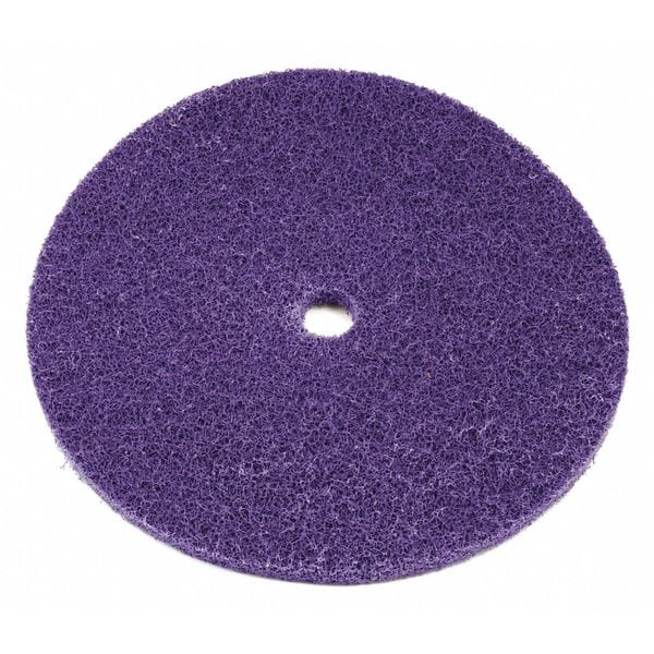 Blend and Finish Disc, Abrasive Material Aluminum Oxide, Grade Medium, Overall Diameter 12 in, Series BF-DC, Maximum Operating Speed 1,900 RPM, Connector Size 1 1/4 in, Connector Type Unthreaded Hole, Abrasive Type Non-Woven, Backing Weight N/A Unavailable, Color Purple, Grit Medium, Resistance Properties Load