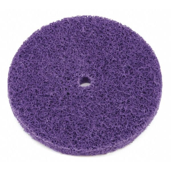Blend and Finish Disc, Abrasive Material Aluminum Oxide, Grade Medium, Overall Diameter 6 in, Series BF-DC, Maximum Operating Speed 4,000 RPM, Connector Size 1/2 in, Connector Type Unthreaded Hole, Abrasive Type Non-Woven, Backing Weight N/A Unavailable, Color Purple, Grit Very Fine, Resistance Properties Load