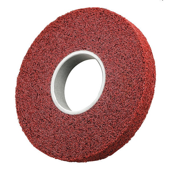 Convolute Wheel, Abrasive Material Aluminum Oxide, Connector Size 5 in, Density Rating Medium (5), Grade Medium, Series MF-WL, Face Width 2 in, Maximum Operating Speed 3,000 RPM, Overall Diameter 12 in, Abrasive Type Non-Woven, Coating Coverage Open, Color Maroon, Resistance Properties Load