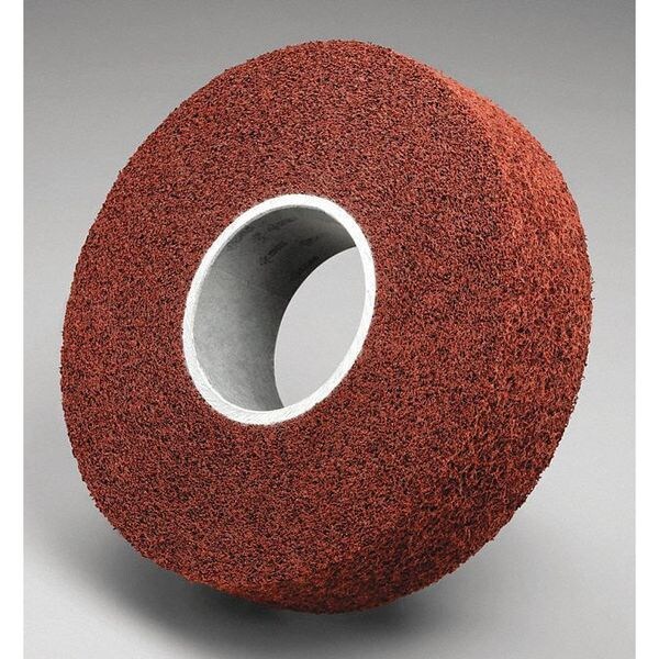 Convolute Wheel, Abrasive Material Aluminum Oxide, Connector Size 3 in, Density Rating Medium (6), Grade Medium, Series MF-WL, Face Width 2 in, Maximum Operating Speed 4,500 RPM, Overall Diameter 8 in, Abrasive Type Non-Woven, Coating Coverage Open, Color Maroon, Resistance Properties Load