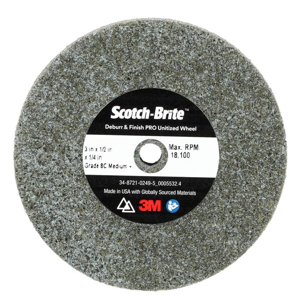 Deburr and Finish Pro Unitized Wheel, 8C Medium+, 3 in x 1/2 in x 1/4 in, 20PK