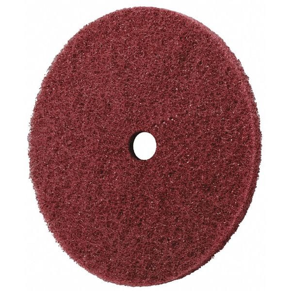 Clean and Finish Disc, Abrasive Material Aluminum Oxide, Grade Very Fine, Overall Diameter 6 in, Series CF-DC, Maximum Operating Speed 4,000 RPM, Connector Size 1/4 in, Connector Type Unthreaded Hole, Abrasive Type Non-Woven, Backing Weight Not Rated, Coating Coverage Open, Color Maroon, Grit 100, Resistance Properties Load
