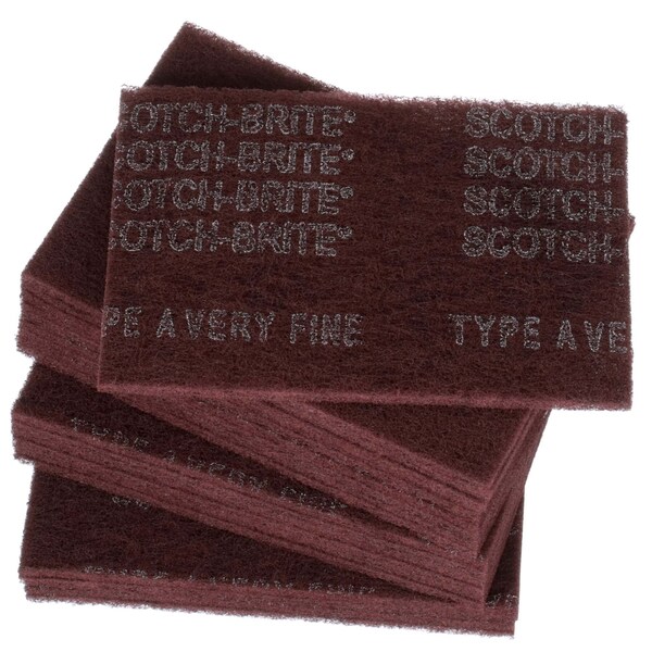 Scotch-Brite General Purpose Hand Pad 7447 combines flexibility with effective cutting action and precise hand control to accomplish tough cleaning jobs or produce fine finishing results, use after use. Very fine grade aluminum oxide abrasives cut fast and fine, leaving a smooth, finished surface. Suitable for use on a wide variety of materials and for many different tasks.