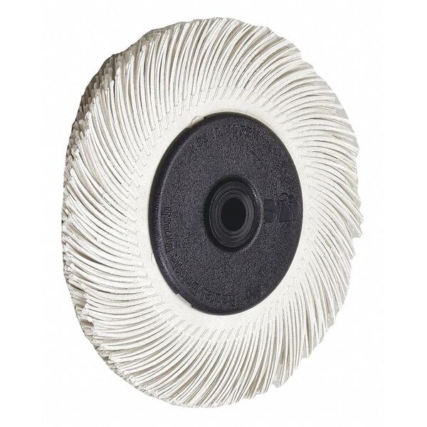 Radial Bristle Brush, Bristle Type Type C, Product Type Radial Bristle Brush, Bristle Material Ceramic, Brush Dia. 7 5/8 in, Grit 120, Face Width 1 in, Compatible Tool Type Bench Grinder, Pedestal Grinder, Primary Material Application Aluminum, Brass, Bronze, Cast Iron, Stainless Steel, Steel, Connector Type Unthreaded Hole, Connector Size 1 1/4 in, Operating Speed - Maximum 6,000 RPM, Shank Length Not Applicable, Color White
