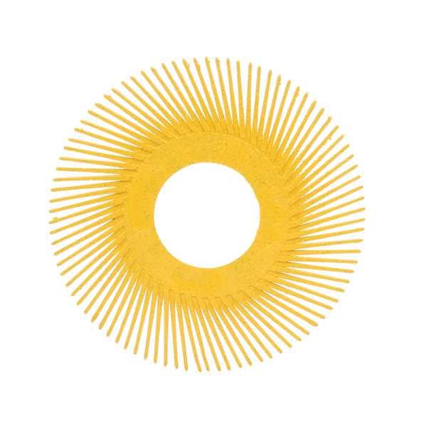 Radial Bristle Brush, Bristle Type Type A, Product Type Replacement Radial Bristle Brush, Bristle Material Ceramic, Brush Dia. 6 in, Grit 80, Face Width 1/2 in, Compatible Tool Type Bench Grinder, Pedestal Grinder, Primary Material Application Aluminum, Brass, Bronze, Cast Iron, Stainless Steel, Steel, Connector Type Unthreaded Hole, Connector Size 1 in, Operating Speed - Maximum 6,000 RPM, Shank Length Not Applicable, Color Yellow, Package Quantity 80