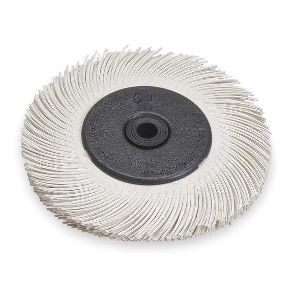 Radial Bristle Brush, Bristle Type Type C, Product Type Radial Bristle Brush, Bristle Material Ceramic, Brush Dia. 6 in, Grit 120, Face Width 7/16 in, Bristle Diameter 6 in, Bristle Length Not Applicable, Compatible Tool Type Bench Grinder, Pedestal Grinder, Primary Material Application Aluminum, Brass, Bronze, Cast Iron, Stainless Steel, Steel, Connector Type Unthreaded Hole, Connector Size 1 in, Operating Speed - Maximum 6,000 RPM, Shank Length Not Applicable, Color White