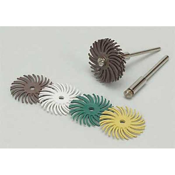 Radial Bristle Disc, Bristle Type Type A, Product Type Radial Bristle Disc, Bristle Material Ceramic, Brush Dia. 1 in, Grit 120, Face Width 1 in, Bristle Diameter 0.125 in, Bristle Length Not Applicable, Compatible Tool Type Die Grinder, Drill Press, Pencil Grinder, Straight Grinder, Primary Material Application Aluminum, Brass, Bronze, Cast Iron, Stainless Steel, Steel, Connector Type Unthreaded Hole, Connector Size 1/8 in, Operating Speed - Maximum 35,000 RPM, Color White, Series RB-ZB