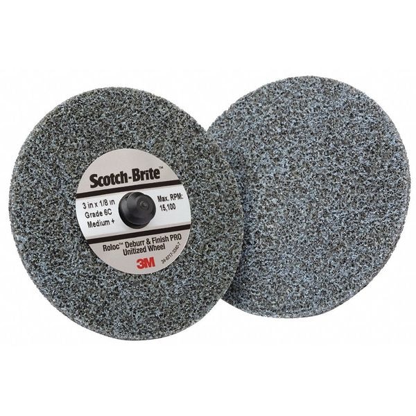 Unitized Wheel, Abrasive Material Ceramic, Density Rating Medium/Soft (6), Grade Medium, Series DP-UR, Face Width 1/8 in, Maximum Operating Speed 15,100 RPM, Overall Diameter 3 in, Connector Size Not Applicable, Connector Type Quick Change, Quick Change System TR, Abrasive Type Non-Woven, Color Gray, Resistance Properties Load