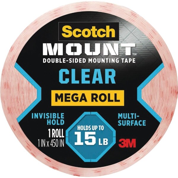 For items that need an undetectable mounting means reach for the stealth adhering power of Scotch Mount Clear Double-Sided Mounting Tape. Virtually clear this double-sided permanent tape is perfect for mounting glass tiles and artwork. Its strong bond holds up to 15 pounds without the hassle of nails or a hammer because of its 3M industrial strength adhesive. So whether youre mounting acrylic cosmetic organizers or a translucent picture frame affix it confidently with Scotch Mount Clear Double-Sided Mounting Tape.