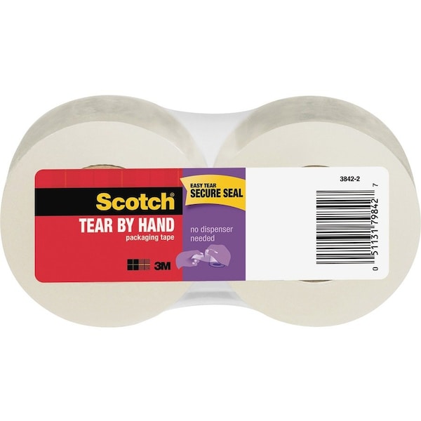 Packaging Tape, Tear-By-Hand, 1-7/8"x50Yds, 1-1/2" Core, 2/PK, CL 12PK (Discontinued)