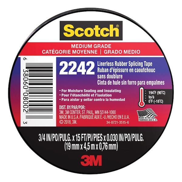 Scotch linerless rubber splicing tape is an economical, general purpose, rubber tape. The tape is a highly conformable, linerless epr (ethylene propylene rubber) based electrical insulating tape. The tape is designed for use in splicing and terminating wires and cables rated up to 90 degree celsius. The tape will meet industry specifications for flame retardance and has the necessary physical and electrical properties to provide immediate moisture seals and void-free buildup.