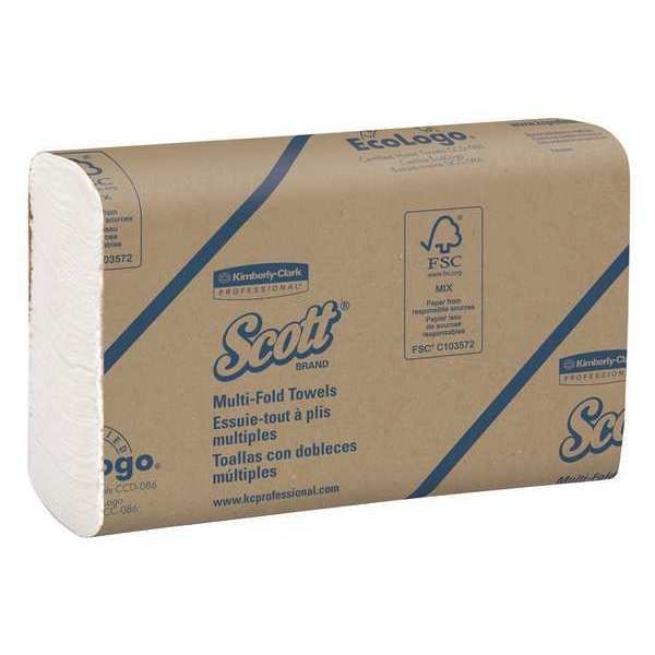 Paper Towel Sheets, Multifold, Scott, White, 1 Ply, Universal, Sheet Width 8 in, Sheet Length 9 3/8 in, Number of Sheets 250, Compatible Grainger Part Number 60HW13, 60HW14, Compatible Mfg. Model Number 09215, 09216, 39711, 39712, 51904, Paper, Package Quantity 16