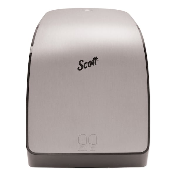 ScottĀ® Pro Electronic Hard Roll Towel Dispenser, 12.66 x 9.18 x 16.44, Brushed Silver