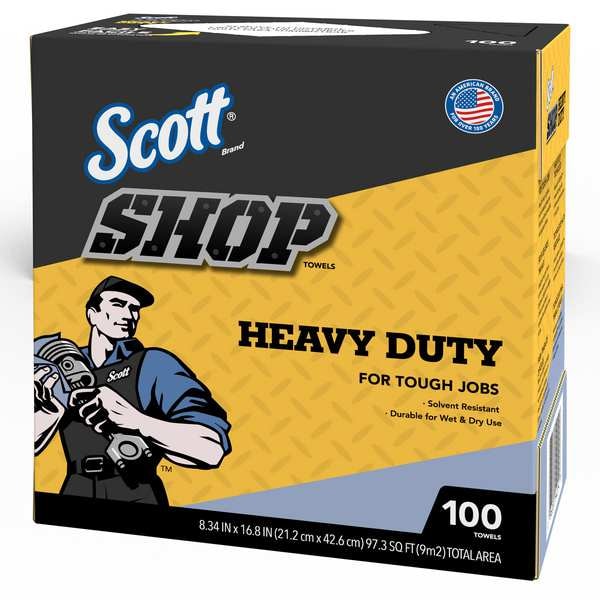 Dry Wipe, Dispenser Box, Product Series SCOTT(R) Shop Towels Heavy Duty, Absorbency Level Heavy, Wet Strength Level Excellent, Blue, Minimum Cleanroom Standards None, Hydroknit, Lint Level Standard, Roll Length No Roll, Sheet Length 16 3/4 in, Sheet Width 8 1/4 in, Number of Sheets 10, Primary Cleaning Application Oil and Grease, Package Quantity 10