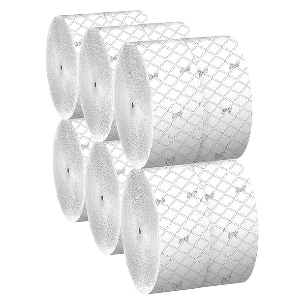 Scott(R) Essential(TM), Toilet Paper Roll, 2 Ply, Sheet Size Continuous, Continuous, Roll Length 1,150 ft, Roll Dia. 9 3/8 in, Proprietary, 3 3/4 in Sheet Width, Continuous Sheet Length, Coreless Core Dia., White, Compatible Grainger Part Number 40AY37, 506K77, 506K91, 60HV82, 60HV83, 60HV84, 60HV85, 60HV86, 60HV87, 60HV88, 60HV89, Compatible Mfg. Model Number 09601, 09602, 09603, 09608, 09609, 34831, 34832, 39709, 39730, 39731, 39732, Jumbo Coreless, Package Quantity 12