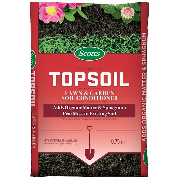 Scotts premium topsoil contains sphagnum peat moss and organic matter to condition the soil in your lawn or garden. Use it as a top dressing to maintain your garden or as a conditioner when establishing a new garden. For in-ground use only.