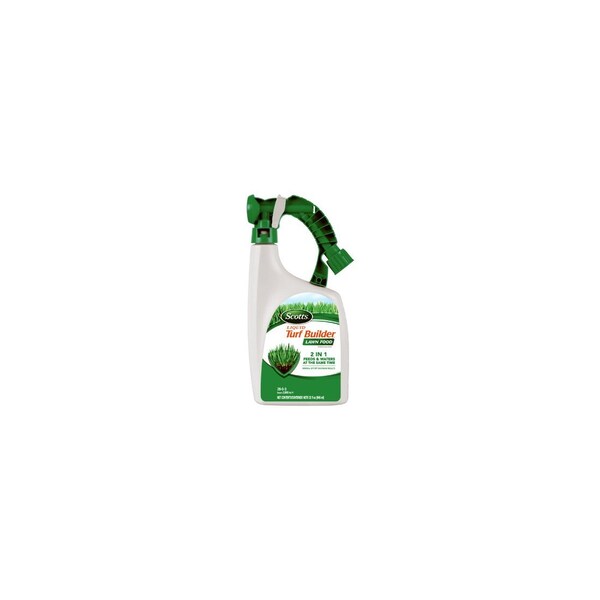 FOOD LAWN RTS 2000 SQ FT 32OZ Feed, green and water your lawn, at the same time! Scotts Liquid Turf Builder Lawn Food is the easy and quick way to a great-looking green lawn. Apply it during any season, to any grass type Product should be applied to actively growing grass. Simply connect the bottle to your hose and spray. This small, yet powerful, 32 fl-oz bottle has the essential nutrients and feeding power your lawn needs for quick and impactful feeding.