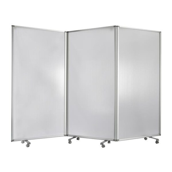 Screen Gems Resilient Screen SG-346 is a 3 panel accordion style room divider with wheels that can be used to easily separate your space. Made with PVC. It features an opaque finish enough to offer privacy in between spaces, while also allowing light to filter in. Easily connect several screens together to create a larger room partition. Not only is this a functional screen but it also adds some style to any room. Use your divider as a freestanding room partition, temporary wall, sound barrier and much more!