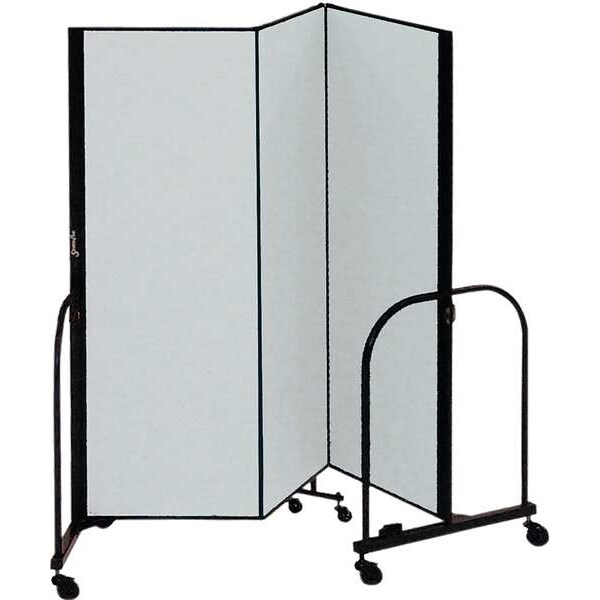 Room Divider, Number of Panels 3, Panel Height 48 in, Panel Width 22 in, Overall Height 48 in, Overall Width 69 in, Panel Thickness 3/4 in, Color Stone, Sound Absorbing Acoustical Panels with Black Painted Metal Trim Construction, Assembled, Features Tackable Surface, Frame Color Black