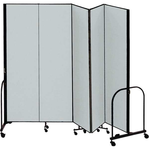 Room Divider, Number of Panels 5, Panel Height 48 in, Panel Width 22 in, Overall Height 48 in, Overall Width 113 in, Panel Thickness 3/4 in, Color Stone, Sound Absorbing Acoustical Panels with Black Painted Metal Trim Construction, Assembled, Features Tackable Surface, Frame Color Black