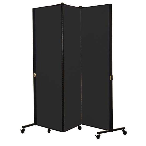 Room Divider, Number of Panels 3, Panel Height 69 in, Panel Width 22 in, Overall Height 69 in, Overall Width 69 in, Panel Thickness 3/4 in, Color Black, Fabric Covering; Fiberglass Matt Construction, Partially Assembled, Frame Color Black