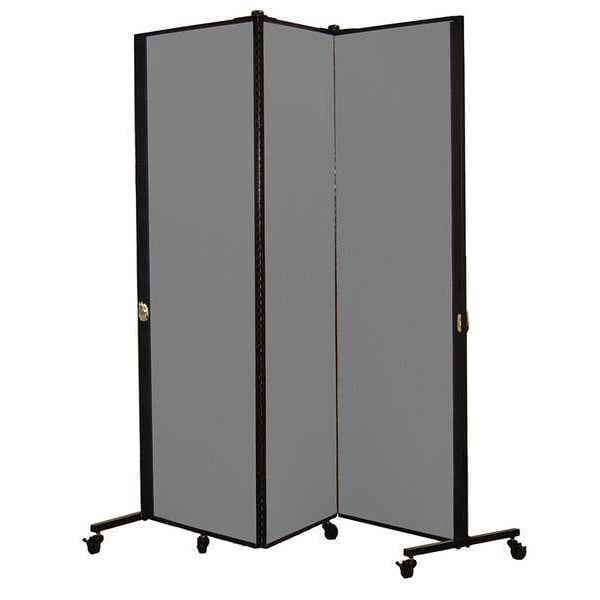 Room Divider, Number of Panels 3, Panel Height 69 in, Panel Width 22 in, Overall Height 69 in, Overall Width 69 in, Panel Thickness 3/4 in, Color Gray, Fabric Covering; Fiberglass Matt Construction, Partially Assembled, Frame Color Black