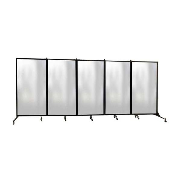 Room Divider, Number of Panels 5, Panel Height 74 in, Panel Width 22 in, Overall Height 74 in, Overall Width 200 in, Panel Thickness 3/16 in, Color Semi-Transparent, Acrylic Construction, Partially Assembled, Features Wet Erase Marker Friendly Panels, Frame Color Black