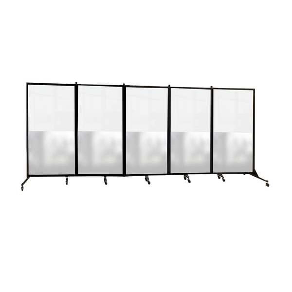 Room Divider, Number of Panels 5, Panel Height 74 in, Panel Width 22 in, Overall Height 74 in, Overall Width 200 in, Panel Thickness 3/16 in, Color Clear; Semi-Transparent, Acrylic Construction, Partially Assembled, Features Wet Erase Marker Friendly Panels, Frame Color Black