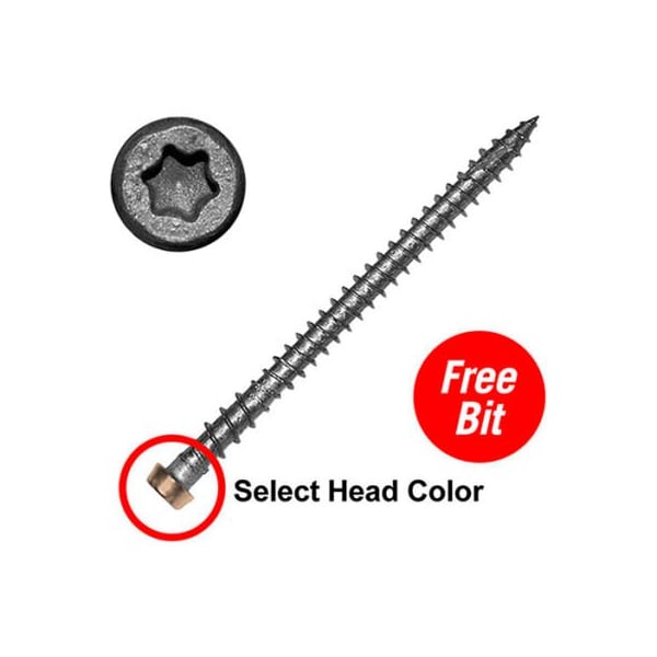 the ultimate composite deck screw. C-deck composite deck screws are for use with wood, composite, pvc and other plastic materials. Stainless steel c-deck screws are available in 10 colors that will match most common deck colors on the market and has shown over 1000 hours of resistance in salt spray tests. C-deck is specially designed to eliminate the mushrooming and blemishes that can occur in composite materials. features: pressure treated compatible - excellent performance in all plastic composite, pvc & wood decking eliminates composite mushrooming, does not produce secondary lumps around the head leaves a smooth, flush, countersunk finish, starts easily and drives with less torque, reduced splitting