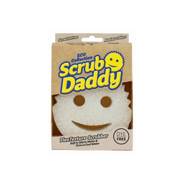 This Scrub Daddy is made of the same FlexTexture material as the classic Scrub Daddy cleaner, yet contains no dyes So you can grab it any time for a range of cleaning tasks in the kitchen and beyond Its surface adjusts with water temperature, softening in warm water then firming up in cold for more scrubbing power Use it to scour nonstick cookware and gadgets without scratching his mouth actually lets you clean both sides of each utensil in one pass Safely clean dishes, appliances, wood, plastic, stainless steel, copper and glass Because Scrub Daddy rinses clear and resists odors, it can be used again and again for tough jobs all over the home