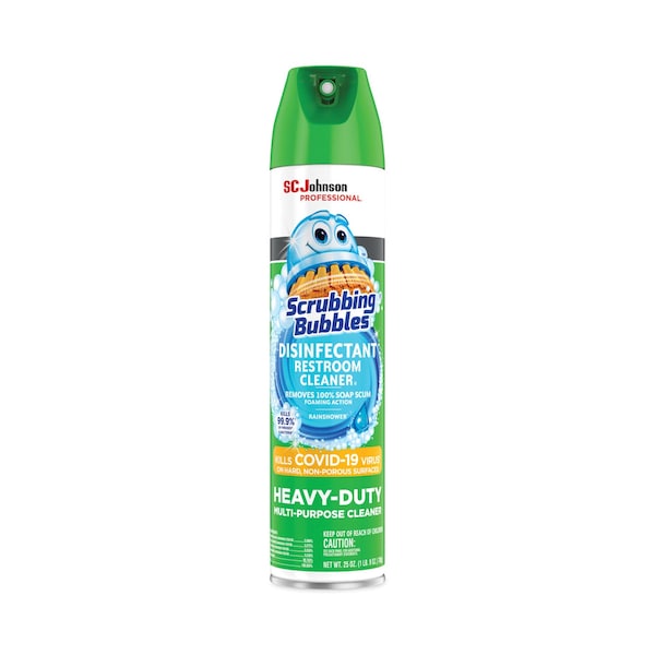 Scrubbing Bubbles Disinfectant Restroom Cleaner II kills 99.9% of viruses and bacteria such as Herpes Simplex Virus Type 1, Herpes Simplex Virus Type 2, Influenza A (H1N1) Virus, Respiratory Syncytial Virus, Rotavirus, SARS-CoV-2, Staphylococcus aureus (Staph), Salmonella enterica (Salmonella), Pseudomonas aeruginosa, Enterobacter aerogenes, Escherichia coli 0157:H7 (E. Coli), Listeria monocytogenes, Methicillin Resistant Staphylococcus aureus (MRSA) when used according to disinfection directions on hard, non-porous surfaces. Fast-acting formula penetrates and lifts dirt to deliver a total clean in your restroom. Multi surface cleaner is a bathtub cleaner, shower cleaner and sink cleaner and can be used on chrome fixtures, fiberglass, glass, glazed ceramic tile, glazed porcelain, laminate, sealed granite, sealed quartz, stainless steel and vinyl. Makes cleaning soap scum and dirt easy, while leaving behind a brilliant shine. Not recommended for use on acrylic fixtures. Spot test all other hard, non-porous surfaces in an inconspicuous area. Use pesticides safely. Always read label and product information before use.