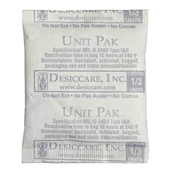 Desiccant Bag, Desiccant Bag Type Container, Area Protected 0.03 cu ft, Width 2 1/8 in, Length 2 1/2 in, Desiccant Bag Size 12 g, Container Type Pail, Bags per Package 700, Humidity Levels 20 Percent, 40 Percent, Indicators per Case 700, Application Humidity Detection, Material Montmorillonite Clay, Color White, Package Quantity 700