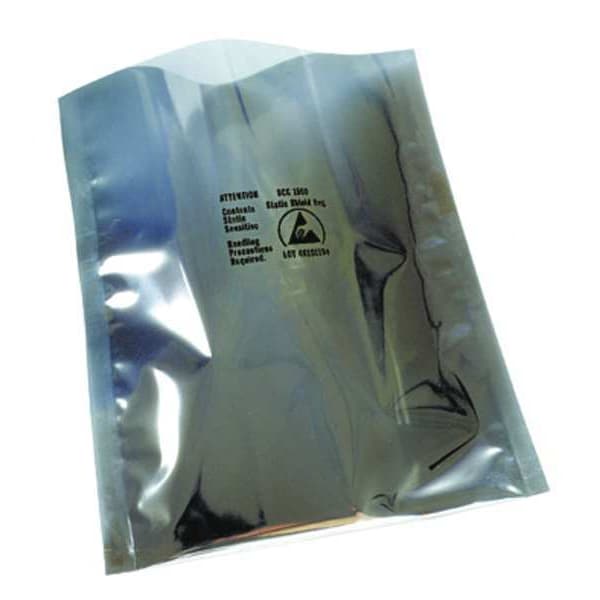 Static Shielding Bag, Width 8 in, Length 12 in, Thickness 0.003 in, Coating Abrasion Resistant, Color Silver, Open, Bag Closure Type None, Discharge Shielding Energy Test 10 nJ, FDA Compliant No, Seal Strength 14 lbf, Heat Seal Recommended Temperature 300 Degrees to 375 Degrees F, Metal-In/Metal-Out Metal Exterior, Bag Package Configuration Flat Pack, Puncture Strength 10 lbf, Exterior Surface Resistance 10,000 to 1,000,000 ohm, Interior Surface Resistance 10,000 to 100,000,000,000 ohm