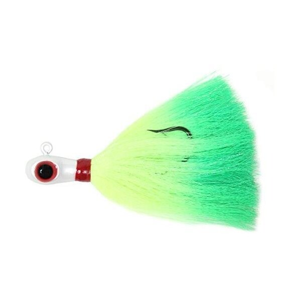 Bugeye Jig 1 12 Oz, White HeadChartreuseGreen Tail, Mylar (Discontinued)