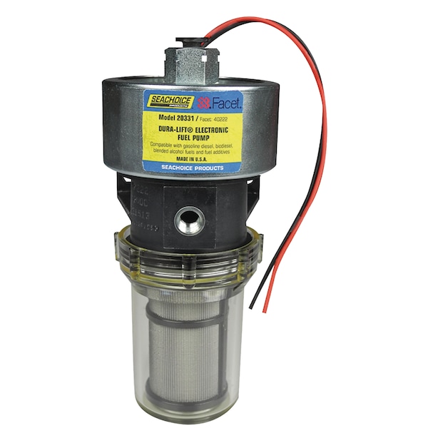 This solid state fuel pump can be used on: refrigeration trucks, marine generator sets, diesel filtration systems, industrial applications, and other diesel lift applications. Compatible with gasoline, diesel, biodiesel, blended alcohol fuels and fuel additives. Easy to install; 4 Hour dry run; 80 Micron stainless steel filter included; Self-regulating; Voltage spike protection; Internal check valve; Reliable solid state design provides longer life; Made in U.S.A by FACET