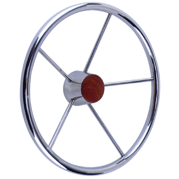 5 Spoke 15" Stainless Steel Destroyer Wheel With Genuine Teak Cap