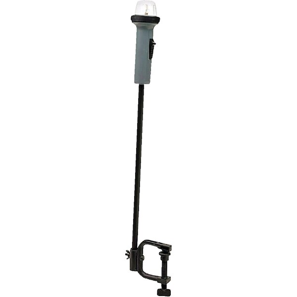 24 aluminum pole light with adjustable clamp. Easily mounts to transom. Powered by 2 D batteries (not included).